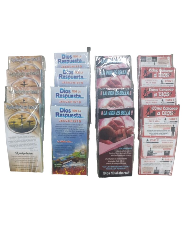 Diferentes mensajes y motivos en tratados para evangelizar. Comunícate con nosotros y pide los tuyos! 6000 pesos el paquete x 100 unidades.